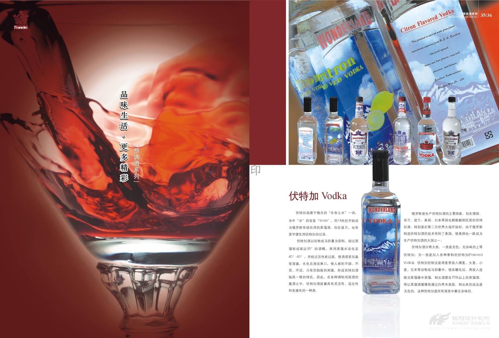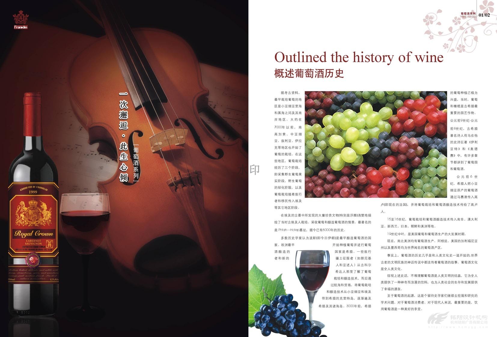 “只為懂生活的您......”,“一次邂逅·此生心傾”。美國富蘭克林酒業成立于1933年,是美國第二大品牌,宣傳冊設計概述了葡萄酒歷史,法國五大頂級酒莊,如何鑒別、鑒賞紅酒,葡萄酒的分級及餐桌禮儀等。圖文并茂,精美絕倫,是一本值得收藏的畫冊。